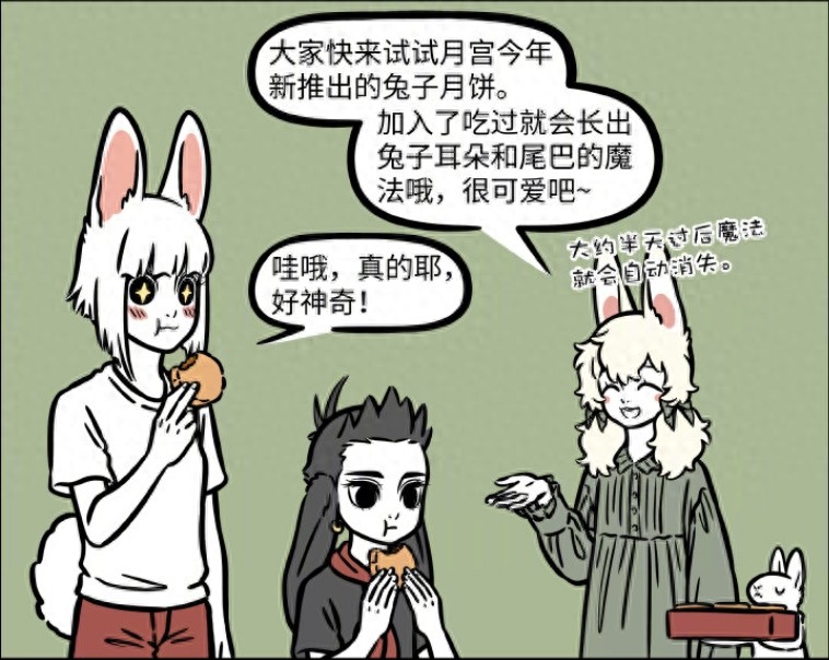 比如今年,小玉他们就推出了兔子月饼,加入了能让人展出兔子尾巴和兔子耳朵的毛发,只要吃下这个月饼,就能长出兔子耳朵而后尾巴,直接让可爱值翻翻